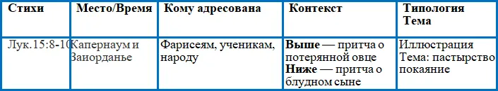 Притча о потерянной драхме у Луки является продолжением притчи о заблудшей овце и плавно перетекает в притчу о блудном сыне.