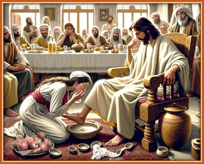 Женщина, напротив, не только помазывала миром ноги Иисуса, но и непрестанно целовала их, что было знаком сильной любви, искреннего чувства и глубокого раскаяния.