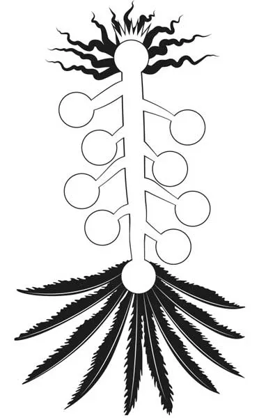 В интерпретации на рис. 3 отображены два аспекта этого Мирового древа, которые повторяют ту же историю, которую я рассказывала. Дерево рассматривается как серия божественных эманаций. Древо познания добра и зла находится в нижней части диаграммы, нашей теневой, или павшей, вселенной. Древо же жизни, являясь изначально небесной вселенной, располагается в пространстве над первой сферой. На иврите это место часто называет местом «бесконечного света»31.