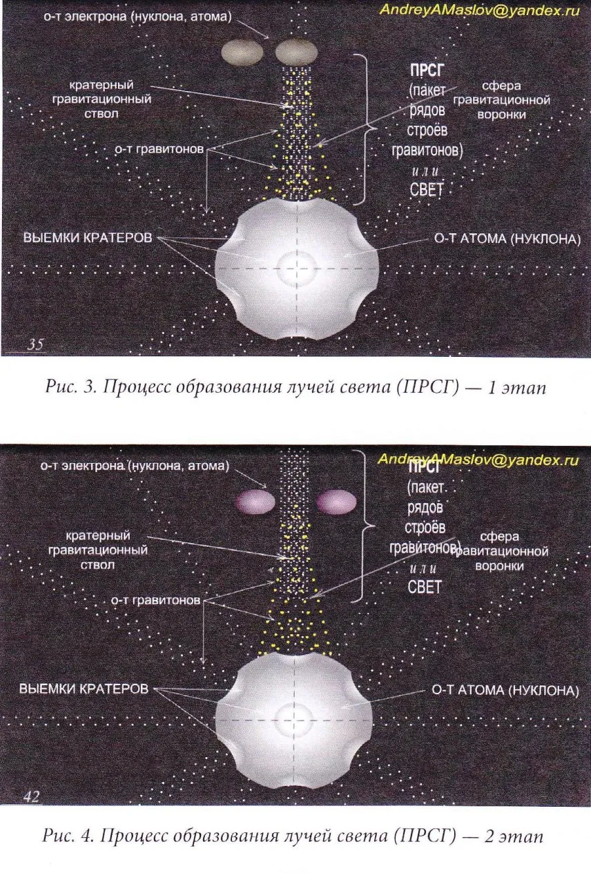 Так, гравитонные струи лучей света убедительно себя проявили в «эффекте Дёмина». Дёмин Евгений Иванович в 1980-х годах провёл серию экспериментов с лучами света. Он «взял…электрическую лампочку, на пути её лучей поставил экран…из теплоизоляционного материала большой толщены… пробная масса в виде шарика на коромысле крутильных весов…притягивалась…гравитоны, проходя через препятствия притягивали пробное тело на крутильных весах к экрану…эффект…проверяли в газовой среде, вакууме, жидкости, меняли силу и цвет источника света – эффект упорно проявлялся» [8].