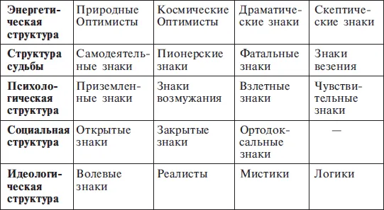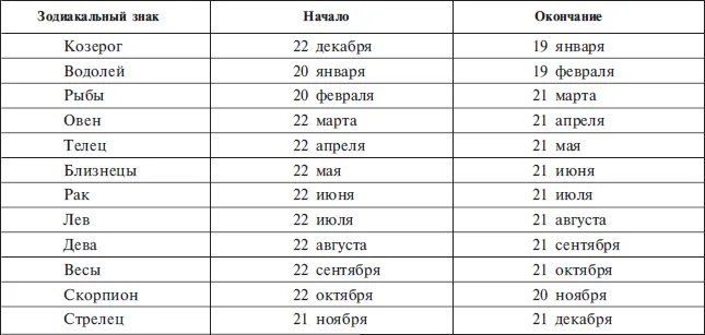 ТАБЛИЦА ЗОДИАКАЛЬНЫХ ЗНАКОВ