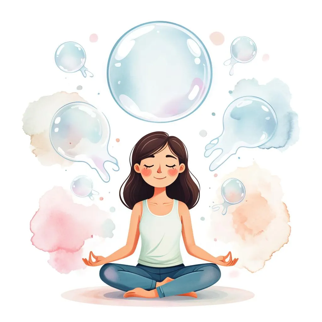 Представь себе пузырь, который появляется над твоей головой. Медленно выпусти в этот пузырь из головы всю твою усталость, тревоги и плохие мысли. А затем наблюдай, как этот пузырь улетает вверх и вдаль, исчезая в небесах. Почувствуй, как твоё тело расслабляется, а сознание становится спокойным.