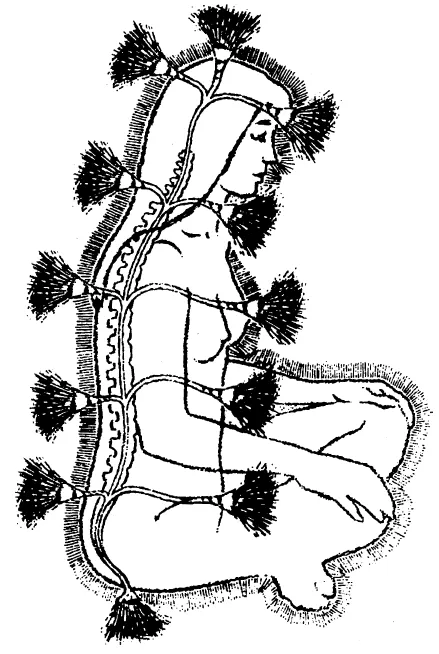 На втором рисунке представлено символическое расположение энергетических каналов на теле. В центре находится главный энергетический канал, от которого отходят боковые энергетические каналы, питающие органы тела, его участки и т. д.