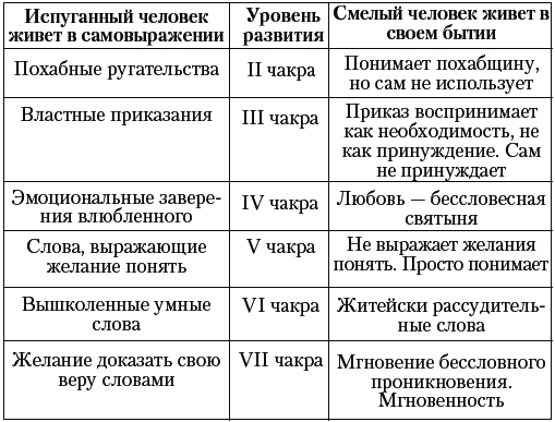Слова и тон, которыми человек общается, выражают уровень развития этого человека. Испуганный человек и смелый человек общаются по-разному. Они могут говорить либо молчать – в том и другом случае это делается красноречиво.