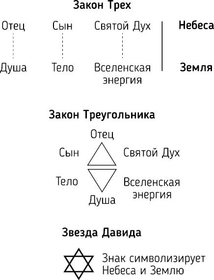Этот Закон Трех был отсылкой к теории реинкарнации. Ранние христианские отцы, более просвещенные, соединили Святую Троицу индуизма с этой доктриной из учений Иисуса, создав Святую Троицу, которую теперь признает христианство1. Отец, Сын и Святой Дух отсылают к душе, телу и Вселенской энергии или жизненной силе.