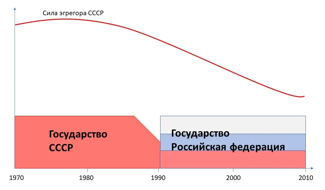 Рисунок. Сохранение эгрегором СССР своей мощи после развала Советского Союза