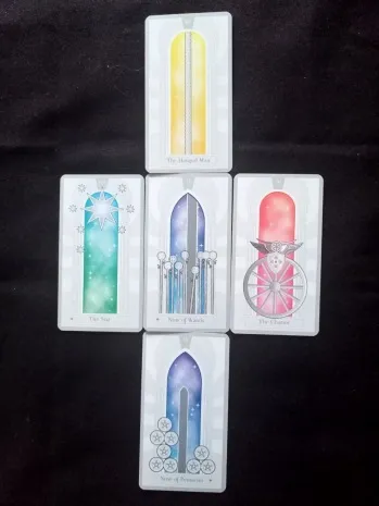 Чтобы увидеть, как энергия течёт в человеке, используется реальный пятиступенчатый расклад Матрицы. Он строится на тех же пяти энергиях – ЭП, ЭО, ЭТМ, ЭВ, ЭБ, – но каждая из них раскрывается через свой аркан Таро, отражающий текущее состояние потока.