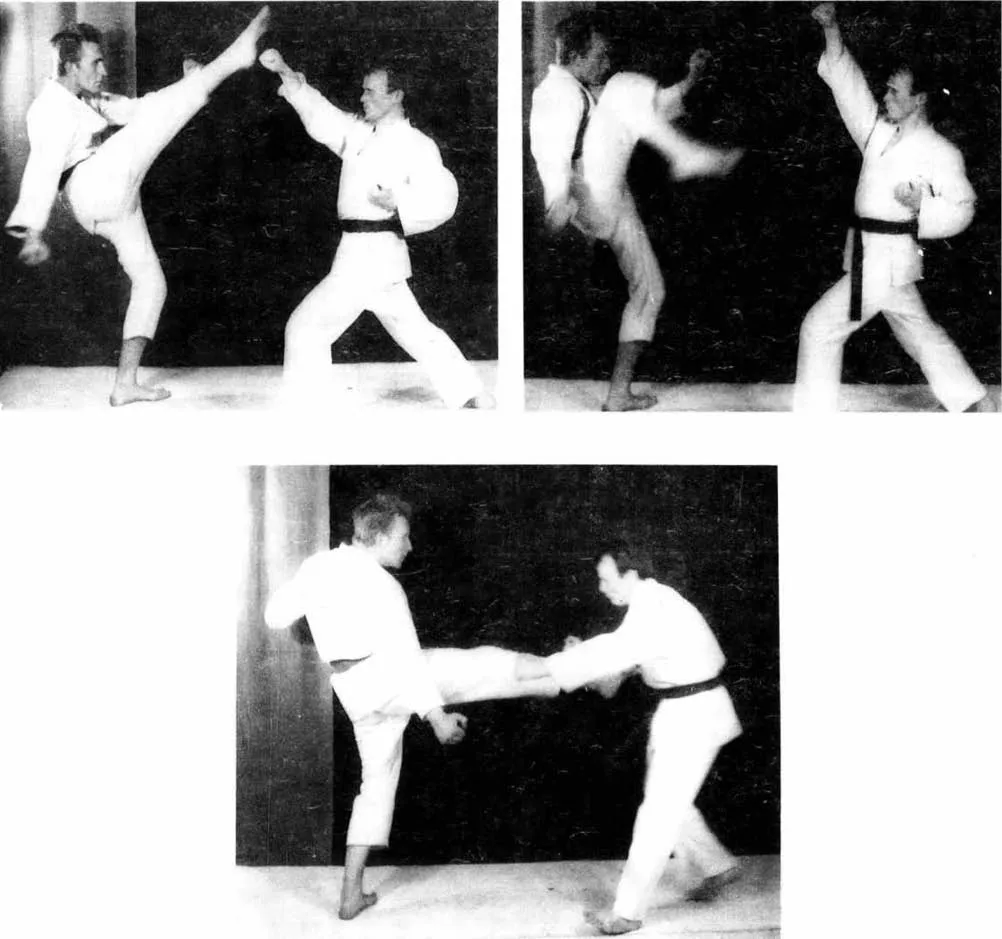 При отработке комбинированных ударов ногами следите за вращением бедер. Особенно это важно при нанесении последовательных ударов ногой. После нанесения удара обязательно отдерните ступню бьющей ноги назад к колену опорной ноги и, сохраняя равновесие, нанесите следующий удар этой же ногой. Лишь только после того, как вы не одну сотню раз повторите всю основную технику защиты и нападения, а также различные комбинации ударов в КИХОН, вы имеете право переходить к следующему этапу ваших тренировок.