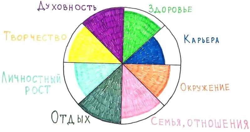 Вот рисунок, по которому можно ориентироваться, подумать, в какой сфере жизни у вас перевес, как это исправить, чтобы добиться гармонии.