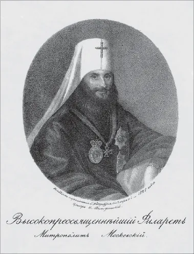 Митрополит Московский Филарет (Дроздов). Литография 1826 года
