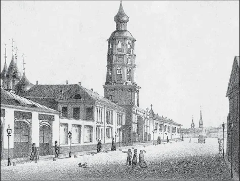 Высокопетровский монастырь в Москве. Литография. 30-е годы XIX века