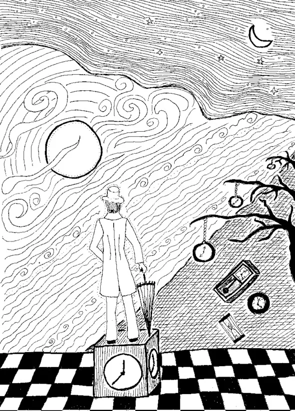 Работаю в университете. Всегда прихожу вовремя, секунда в секунду начинаю свою работу и заканчиваю её. Но однажды мой мир рушится, всё идет не так, как обычно. По пути домой начинается дождь. Я предусмотрителен и всегда ношу с собой зонт, но сильный порыв ветра вырывает его у меня из рук, и я оказываюсь насквозь мокрым. Вынимаю из кармана часы и понимаю, что в них попала вода. Когда я держу их в руке, то вижу, как отпотевает стекло изнутри. Я совершенно растерян, потому что часы – мой основной ориентир в жизни, и теперь он потерян. Стою посреди улицы мокрый, с часами в руках и не знаю, что делать. Я даже забыл, в каком направлении мне нужно идти.