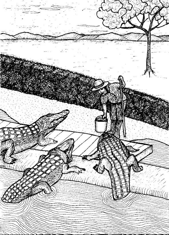 Когда привозят заключенных, приезжают фермеры и разбирают нас – кого на сахарный тростник, кого на плантации для сельскохозяйственных работ. Меня увидел огромный рыжий мужик с бело-розовой кожей и пышными рыжими усами, в грубой одежде. Я стою на коленях, руки сзади скованы. Поднимаю лицо, глядя на него, длинные волосы, слипшиеся сосульками, усиливают мой злобный взгляд. Именно этот взгляд и привлек его внимание. Он забрал меня и еще четверых на свою крокодиловую ферму.