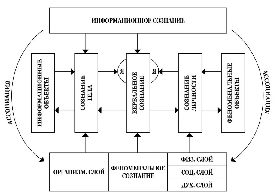 Итак, мы рассмотрели трансформации самости человека, происходящие при смене личности в РМЛ, при деформациях симбиотических связей в расстройствах деперсонализации и при утрате тела во время клинической смерти. Наблюдаемые в этих случаях психические проявления позволяют сделать вывод об объективном существовании обособленной части человеческого сознания, которую в психологии отождествляют с личностью, а в философии и религии – с душой. С информационной точки зрения это соответствует существованию двух ИС, одна из которых связана с телом и оперирует информацией, представленной в символьной форме, а другая, связанная с личностью, использует феноменальную информацию, воспринимаемую в форме осознанных переживаний квалиа, чувств и образов.