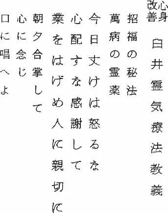 В качестве духовной основы своей системы Усуи выбрал принципы императора Мэйдзи, которые назвал приносящей счастье техникой и чудесным целительным средством.