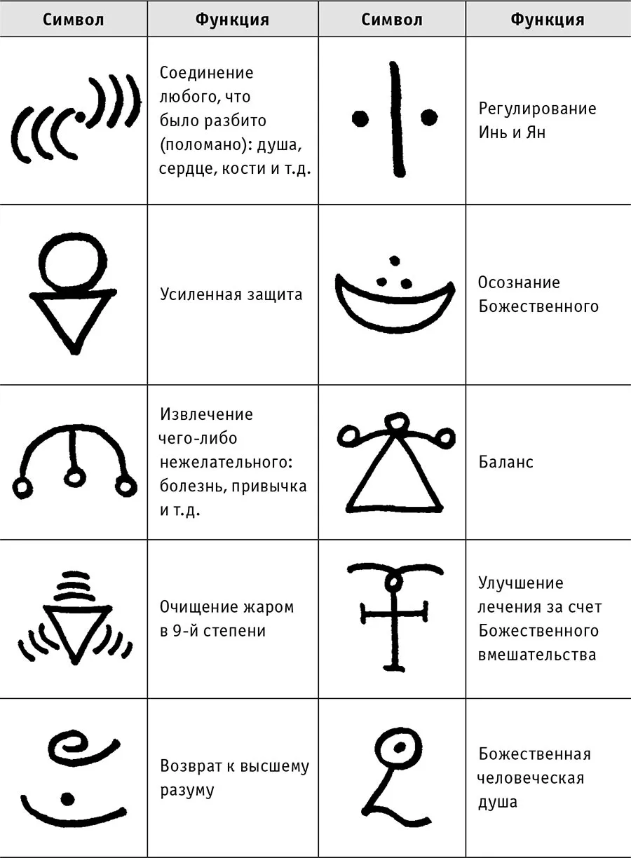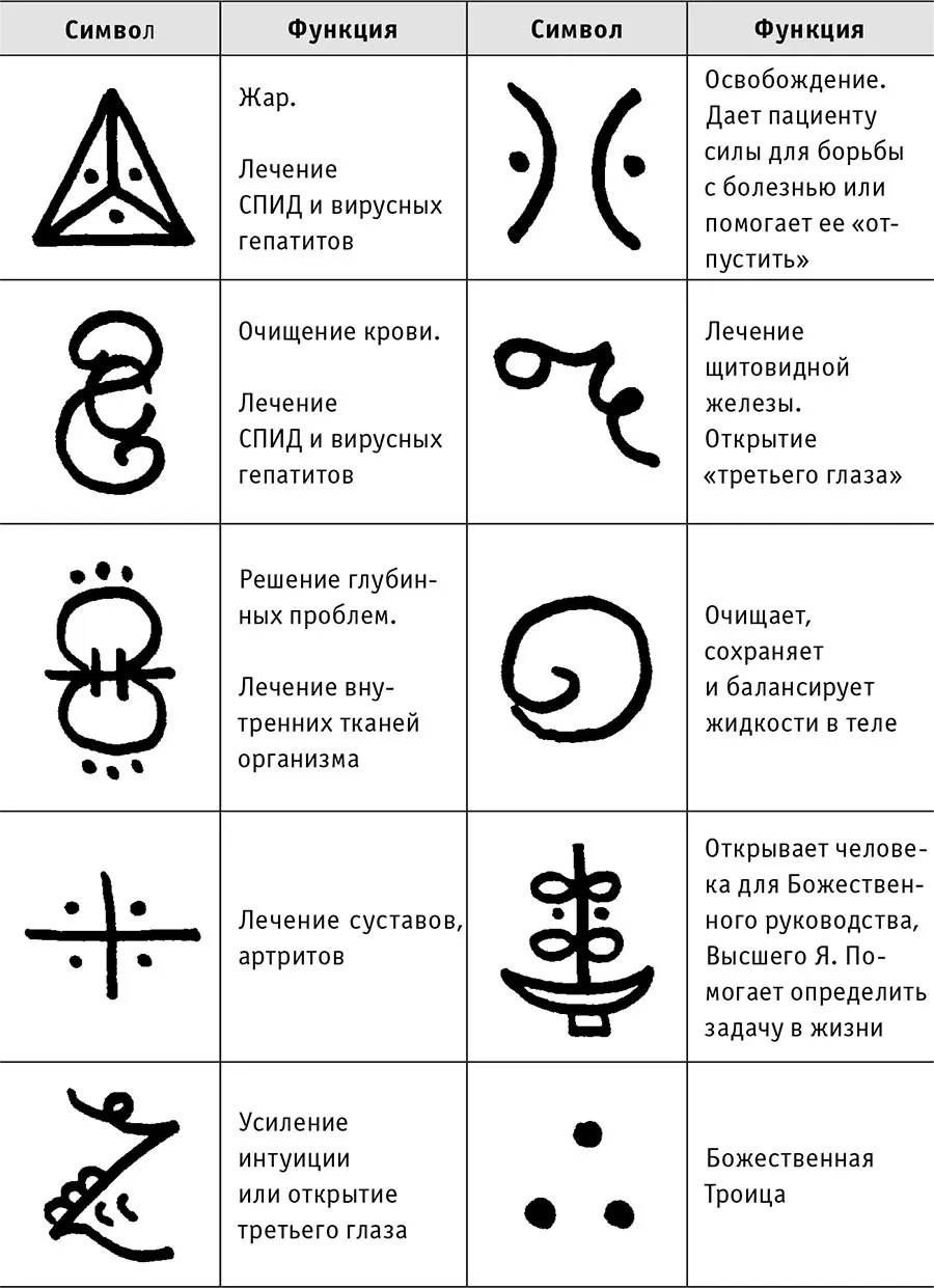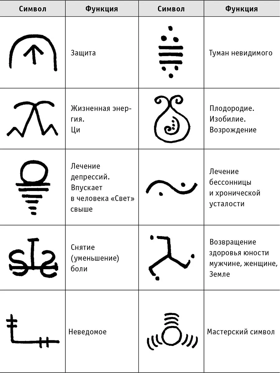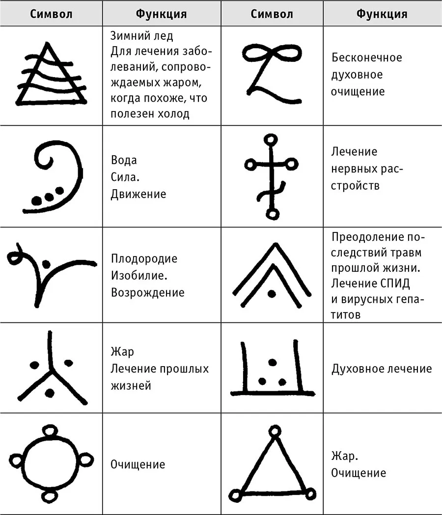 Каждый может выбрать для себя свой, индивидуальный подход в работе с символами, таким образом выявляя для себя наиболее эффективный метод работы. Ив Мур, например, имела набор небольших деревянных дощечек, на которых были нарисованы символы. Когда она хотела сделать целительный сеанс, она складывала в одну коробку эти дощечки и какую-то вещь, принадлежащую пациенту.