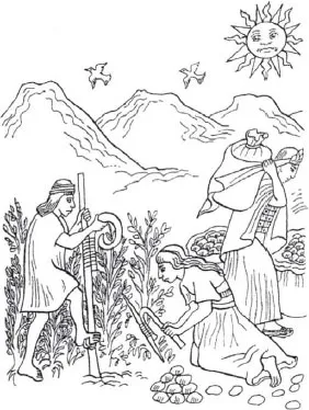 Горная местность препятствовала развитию скотоводства, а из одомашненных животных была только малосильная лама (дальний родственник верблюда), поэтому полагались в земледелии только на ручной труд (рис. 9б).