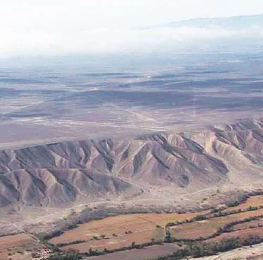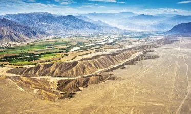Плато Наска площадью более 600 кв. километров, т. е. приблизительно 60 километров в длину и 10 километров в ширину, сейчас представляет собой голую ровную поверхность, изрезанную небольшими оврагами и холмами с уклоном гор к обрывам рек, и похоже на дно огромной котловины. Быстрые реки, рассекая горные ущелья, размывая и частично растворяя породы, несли мелкие камни и гальку, которыми с тех пор усыпано всё плато (рис. 17, 18). Богатая минералами и илом вода была хорошим удобрением для сельскохозяйственных культур.