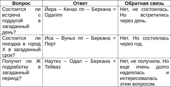 Если же в триплете Беркану окружают две прямые обратимые руны, то на положительное решение вопроса укажет, как ни странно, наличие в позиции фона какой-либо реверсной руны (например, Тейваз пп, Перт пп и др.).