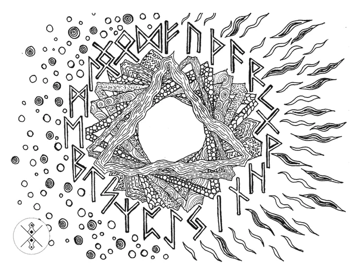Рунный круг. Руны Старшего Футарка можно написать в виде «алфавита» – трех аттов по восемь рун в каждом, или в виде круга. В виде круга руны задают бесконечно повторяющуюся последовательность. Далее по тексту рунный строй Старший Футарк называется Рунным кругом.
