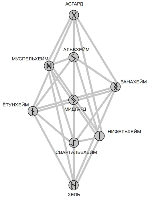 В системе Девяти Миров место человека определено в срединном мире Мидгарда. Если посмотреть на расположение Мидгарда на древе, то легко можно заметить, что к человечьему срединному миру тянется большое количество связей, но связи эти не со всеми, а только с определёнными мирами. Что же это за миры и почему именно они влияют на наш мир напрямую, а все остальные – лишь опосредованно через них?