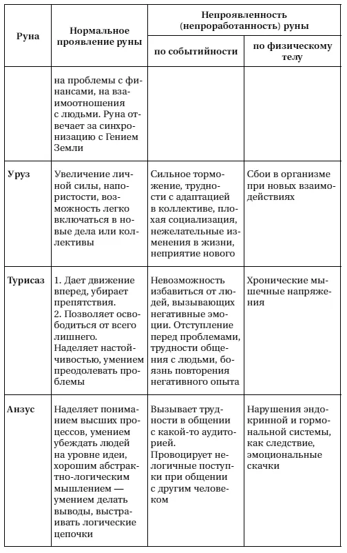 Итак, в идеале человек должен нормально проводить через себя энергии всех 24 рун. К этому надо стремиться, так как непроработанность той или иной руны привносит в жизнь человека разные проблемы.