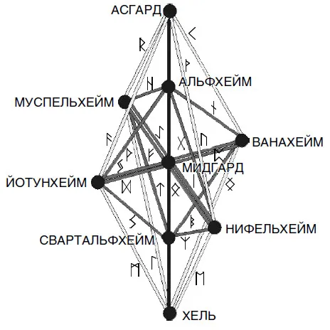 В приведенном отрывке «Речей Высокого» можно увидеть, что Бог Один не изобретал руны. Он их «получил». Получил как наследие своих предков, древних изначальных Сил. Жертва, которую пришлось принести Богу Одину, – это жертва не за обладание, а за знание рун. Он их расшифровал, понял, прочувствовал и передал это знание своим потомкам – нам, людям, жителям Срединного Мира Мидгарда.