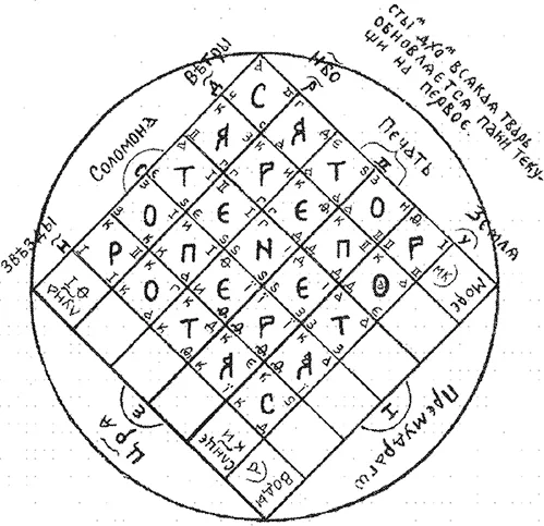 Это печать царя Соломона (рис. 1, взят из [16], т. 2]). Что странного вы видите в ней? Странно то, что Соломон считается иудейским царём, а печать полностью русская. Где вы видели, чтобы заклятия, заговоры, печати, которыми запечатывают, например, джиннов или любые другие Силы, переводили на другой язык, и они сохраняли бы при этом свою силу? Но в данном случае печать Соломона переведена на русский, и она явно рабочая… Значит, она изначально наша, русская?