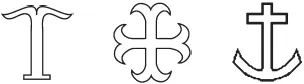 В первые века христианства была важна не художественная сторона изображения священного символа, а практическая. Поэтому буквы, похожие на крест, нередко использовались для обозначения сакрального образа распятия.