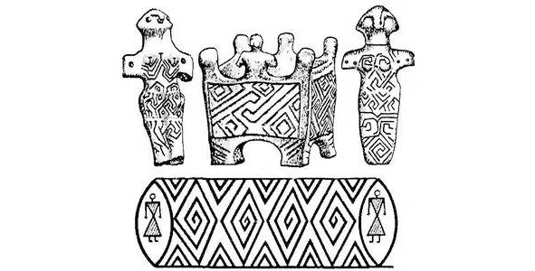 Трудно найти на Русском Севере орудие крестьянского труда, выполненное из дерева – будь то прялка, швейка, льнотрепало, деревянная подставка для светца, на котором не был бы хоть где-нибудь вырезан или процарапан косой крест или ряд таких крестов, как единственный орнаментальный мотив ряды косых крестиков довольно часто встречаются на тканых проставках северорусских крестьянок. Все это свидетельствует о том, что сложившиеся еще в глубинах палеолита орнаментальные комплексы и знаки доживают практически без изменений почти до наших дней, причем, проходя через тысячелетия, не утрачивают главного своего значения – сакрального знака, т.к. чем иным можно объяснить прорезание косого креста под днищем прялки, на рукояти льнотрепала, вырезание ряда косых крестов на стороне лопаски, где их никто, в общем-то, не видит, или наличие только косых крестов на браной проставив, пришивавшейся к праздничному полотенцу или подолу нарядной женской рубахи.