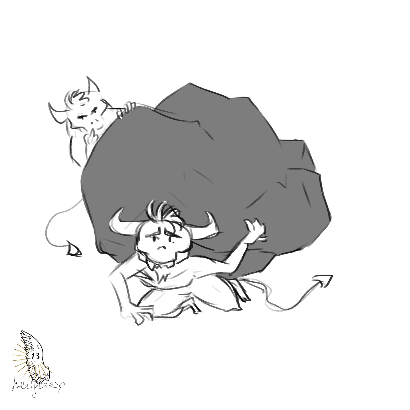 – Когда я бросаю эти камни, они помещаются мне в две руки. Когда один из них долетает до них и попадает им на спину, он превращается в большую глыбу, которую невозможно приподнять… То есть, такой булыжник, который таскали раньше. Очень большой. То есть, они, на самом деле, намного тяжелее, чем вот эта куча.
