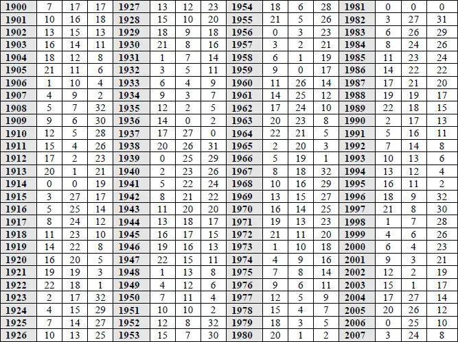 Далее, считаем маркёр дня. В марте 31 день (подсказка таб. 2). Из количества дней месяца вычитаем день рождения.