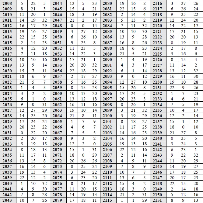 2. Таблица расчета чакр. Формулы Артура Жажкова
