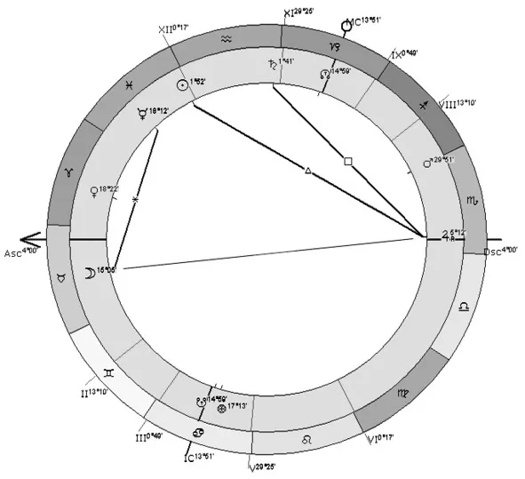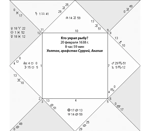 Рис. 7а. Хорарная Карта, построенная У. Лилли на поиск украденной рыбы. Именно в такую схему Карты использовали европейские астрологи во времена Лилли.