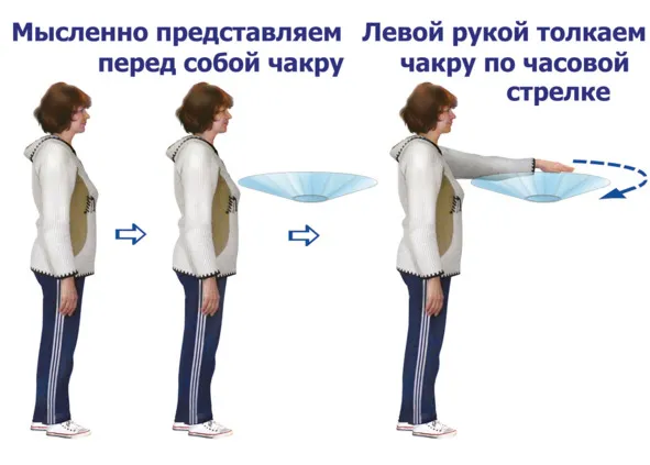 После завершения восстановления всех жизненных чакр вместе с Сахасрарой, уместно потратить около 30—60сек. на то, чтобы закрепить данное восстановление путем концентрации своего внимания одновременно на всех восстановленных и крутящихся по часовой стрелке жизненных чакрах. Если внутренний голос или интуиция говорят, что в этом мысленном сопровождении кручения есть какая-то дисгармония, даже не ясная, лучше всего процесс повторить снова, тем более что он занимает достаточно малое время. Как правило, после непродолжительной практики, данная процедура значительно ускоряется и не требует напряжения. Если же вы захотели это сделать, находясь в обществе, можно не пользоваться руками совсем. Для женщин, в связи с их значительно более высоковибрационным состоянием в пространстве, мысленная процедура может ни чем по своему качеству не уступать предложенной автором. Исполнение данной методики необходимо при начале любой энергетической работы, иначе, по неведению, вы можете начать растрачивать собственную энергетику, что не есть правильно.
