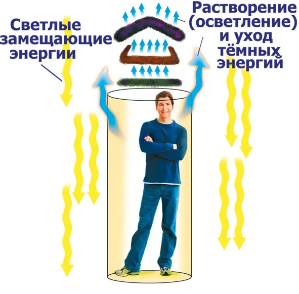 – Это окончание процедуры. Так как затронутые вами энергии велики, реальное окончание процессов снятия с вас этих энергий может занять несколько дней. Если же рядом с вами находится человек, помогающий энергетически проводить этот обряд, то это может значительно ускорить события, ограничивая весь процесс несколькими минутами. Желательно во время обряда представлять над собой некие тёмные энергии в виде или указанных на рисунке форм, или просто в виде сгустков, которые постепенно начинают ярко светиться и таять в окружающем пространстве. Этими действиями вы значительно ускорите процесс, начатый Духом.