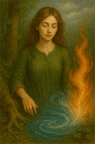 Лея с самого детства ощущала, что в ней живут четыре силы. Она не сразу поняла, как их назвать, но с годами, слушая шёпот леса, пение воды, шорох огня и дыхание ветра, она узнала: в ней живут стихии.