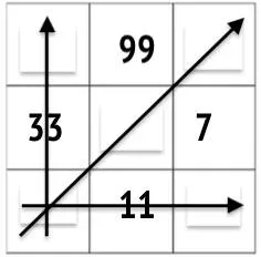 В натальной карте может быть три вертикальных. Три горизонтальных, и две диагональных линии. Таким образом, рассматриваем восемь линий, с числами подряд (это по три числа).