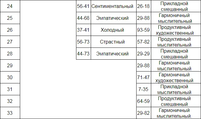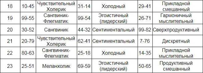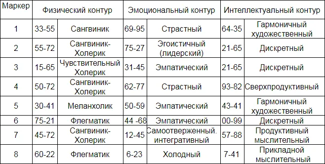 И последний этап: находим в таблице контуров маркеры 18 для физического, 25 для эмоционального и 4 для интеллектуального контуров.