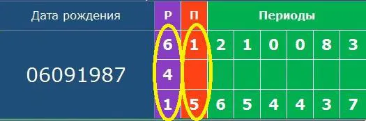 Также код содержит линию родовой кармы (1-й столбик с пометкой “Р”) и личной кармы души или пренатальную линию развития (второй столбик с пометкой “П”) с конкретными задачами, действующими в течение всего воплощения. Они также работают в связке, ведь душа попадает именно в тот род, который резонирует своей кармой с ее собственными задачами. (рис. 3).