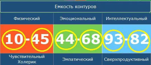 Емкость трех контуров – физического, эмоционального и интеллектуального выражены шестью чакрами (рис. 5). Под цифрами – описание контура для конкретной комбинации чакр. Две чакры образуют один контур.