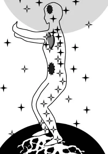Доведите энергию земли до сердечного центра и с улыбкой благодарности направьте ее вверх в небеса. Соединитесь с отцовской энергией небес и почувствуйте, как она наполняет вас бледно‑фиолетовым или ярко‑белым светом.