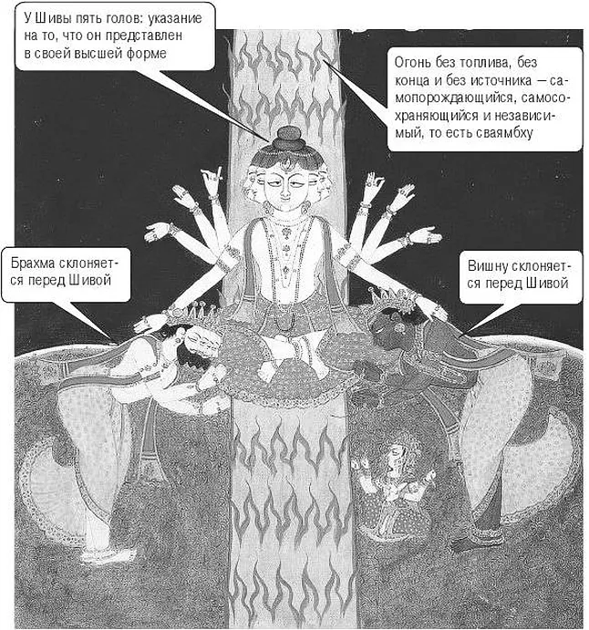 Североиндийская миниатюра, изображающая явление Шивы из огненного столба
