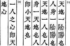 Все черты этого высказывания легко узнаваемы, и, пожалуй, нет ни одной, которая не встречалась бы, почти в тех же выражениях, в трудах Платона или его учеников. Последние особенно характерны. Человек, уподобленный миру или рассматриваемый как копия Неба и Земли, – это мир в миниатюре или микрокосм. Более строго это выражено в другой китайской книге (Цзу Чжоу Пянь):