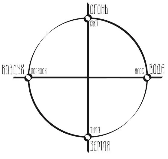 Это бесконечное стихийное движение подобно вечному двигателю – жажда жизни присутствует в любом разуме, даже если этот разум не животный, а стихийный. Именно это намерение выжить и продолжить существование сформировало точки перехода, точки первичного смысла, которые и получили название «первоосновы». Если все стихии будут равны, то процесс вечного движения не прекратится никогда, но если хоть какая-нибудь станет сильнее или слабее, то перекос случится быстро, и та самая природная угроза перестанет быть стимулирующей и реализует себя, прекратив процесс. Чтобы этого не произошло, и работают четыре первоосновы первого, внешнего круга силы: Порядок, Хаос, Свет и Тьма. Они были созданы как регулирующие системы каждая для своей стихии: Порядок для воздуха, Хаос для воды, Свет для огня, а Тьма для земли. Самая крепкая онтологическая связь между стихиями и первоосновами присутствует именно на этом круге. Можно было бы сказать, что стихии – это прародители, а четыре первые первоосновы – это их первенцы. Они, как вселенский гироскоп, выравниваются относительно друг друга и вместе с этим строго бдят, чтобы никакого перекоса в их равновеликой силе не произошло. Именно это равенство и предопределило наличие креста стихий, где возможно другое стихийное сочетание и, как следствие, соединение первооснов, так необходимое для появления других форм жизни и, как следствие, дополнительных инструментов развития всего со всем.