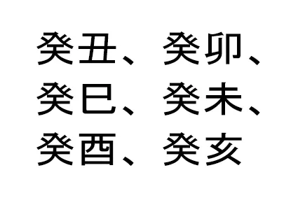 癸丑、癸卯、癸巳、癸未、癸酉、癸亥