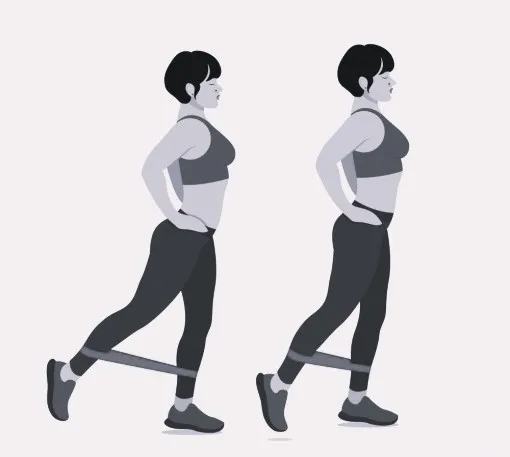 5) Махи ногами с фитнес-резинкой. (Махи ногами вперед и в сторону). Исходное положение: стоя, ноги на ширине плеч. Не наклоняясь корпусом ни вперед, ни в стороны, отводим ногу назад или в сторону ( в зависимости от упражнения) до максимально возможного натяжения. Задержавшись в крайней точке на секунду, возвращаемся в исходное положение. Повторить по 30-50 раз на каждую ногу.