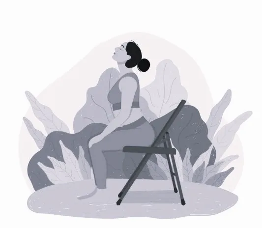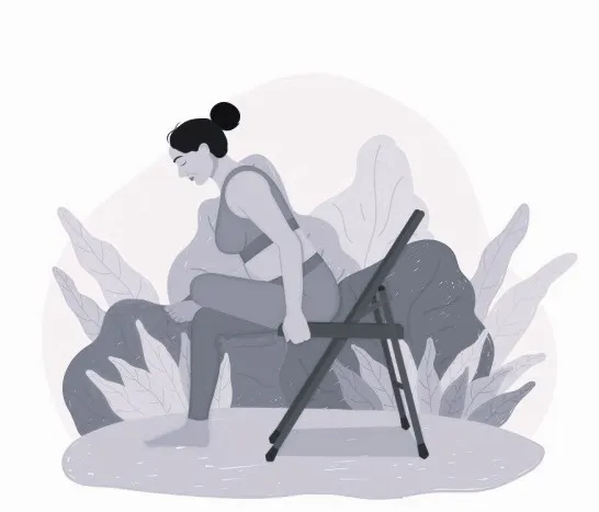 2) Поза «угла» на стуле. Сядь одним бедром на стул, другую ногу – вытяни. Предплечье одной руки помести на согнутом бедре, другую руку вытяни в диагональ, взгляд наверх. Задержись в таком положении на 1-2 минуты, затем поменяй стороны.