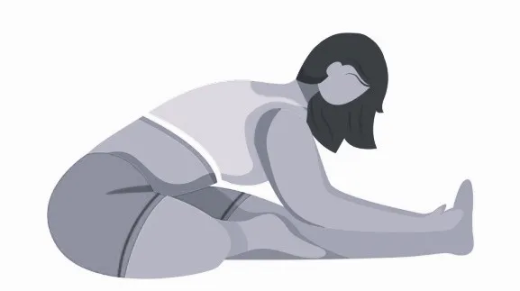 Во втором варианте мы используем возвышение – валик (блок) или свернутый плед. Чем выше таз, тем легче “тянуться” в этом положении.