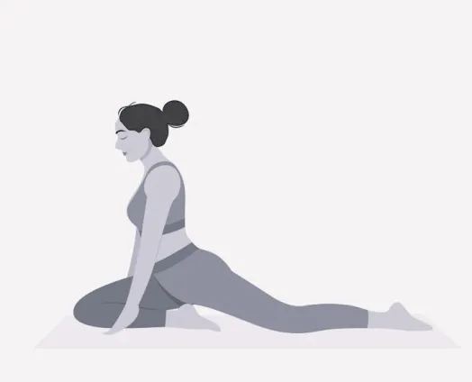 6. Поза «голубя». Из положения на четвереньках подай правое колено вперед. Правую пятку отодвинь немного в сторону, чтобы не сидеть на ней. Левую ногу, наоборот, подай назад, чтобы она была расслабленной и прямой. В этом положении оба бедра приподняты над полом. Постарайся держать спину прямой и расслабься. 1-2 минуты, затем поменяй стороны. Если нога, которая должна быть прямой, слишком согнута или упирается в колено, или в целом положение невозможно, то можно сесть на йога-блок или воспользоваться вариацией на стуле. Техника выполнения упражнения на стуле: сядь прямо, закинь голень одной ноги на бедро другой и, придерживая рукой согнутую ногу, немного наклонись корпусом вперед. Держи положение 1-2 минуты, затем поменяй стороны.